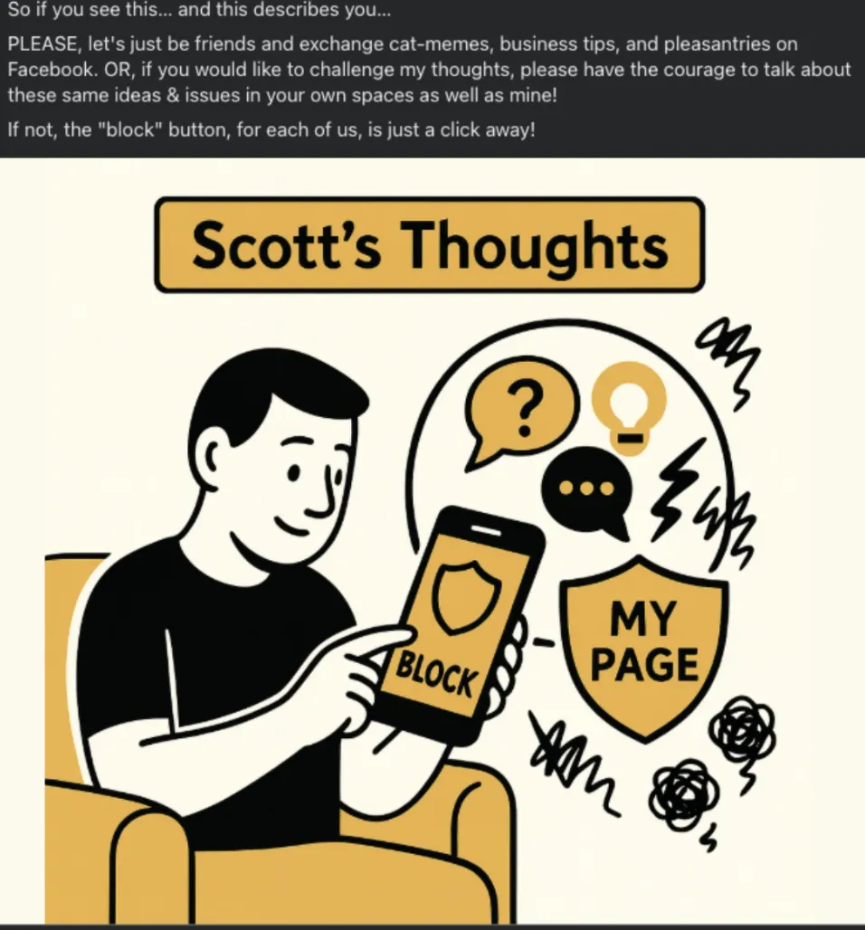 Probably the only place where you’ve gotten the ‘real’ version of Scott is if we are friends on Facebook. If you’ve interacted with one of my very long political, economic, or current event posts, that was me.